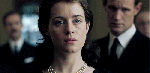 “Despite Margaret and the now Queen Mum dropping their first curtsies before her, and a slightly miffed Philip told he must now trail behind her entering rooms, the money shot is unquestionably the spectral Queen Mary, covered in mourning dress, creakily sinking to her knees before her new sovereign.”